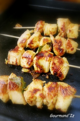 Faire cuire les brochettes au gril, au barbecue ou à la plancha ( dernière option chez moi) en les retournant fréquemment.